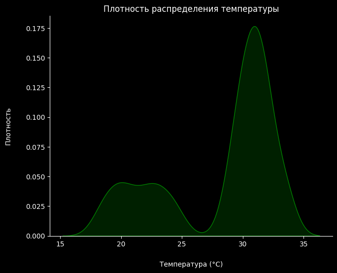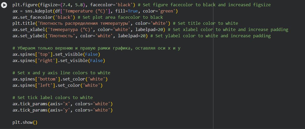 График плотности часто используют для анализа непрерывных переменных с целью выявления вероятности появления того или иного значения, поэтому он хорошо подходит для анализа такого параметра, как температура.