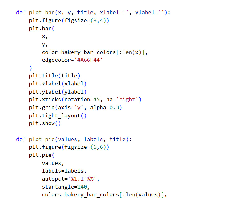 Я написала вспомогательные функции для построения графиков в едином стиле: одна для столбчатых диаграмм, другая для круговых.