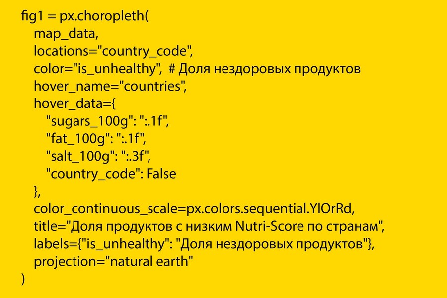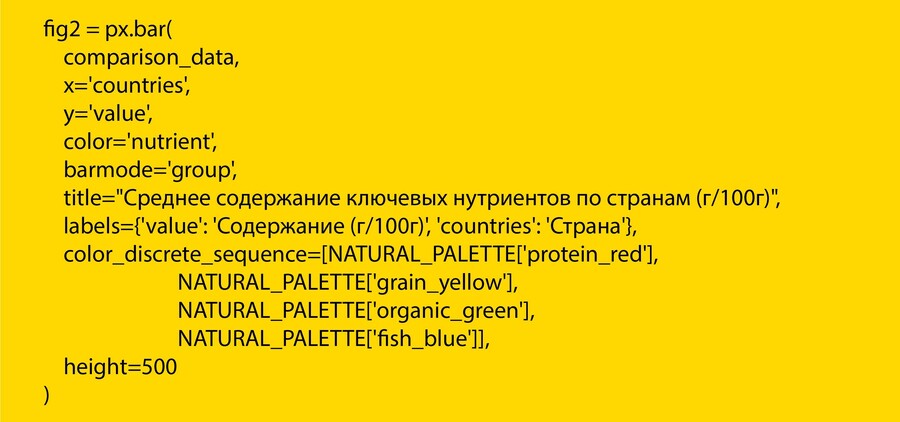 Я исследовала, как различаются ключевые показатели питательной ценности (содержание сахара, жиров, соли, белков) в аналогичных категориях продуктов в России, Франции, Германии, США и Японии. Исследование демонстрирует влияние национальных пищевых стандартов и потребительских предпочтений на конечный состав продуктов, доступных на полках магазинов.
