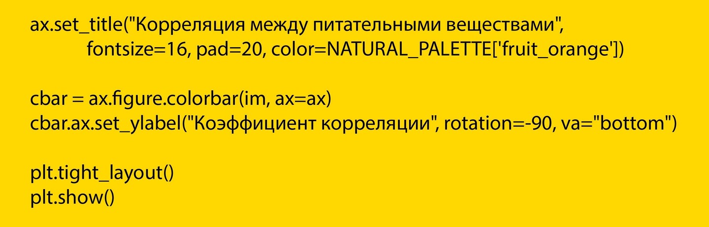 Цель использования: визуализирует взаимосвязь между двумя непрерывными переменными и количественно оценивает направление и силу этой связи. Обоснование выбора: является стандартным и наиболее эффективным методом для выявления корреляционных трендов в непрерывных количественных данных, таких как содержание нутриентов в продуктах.