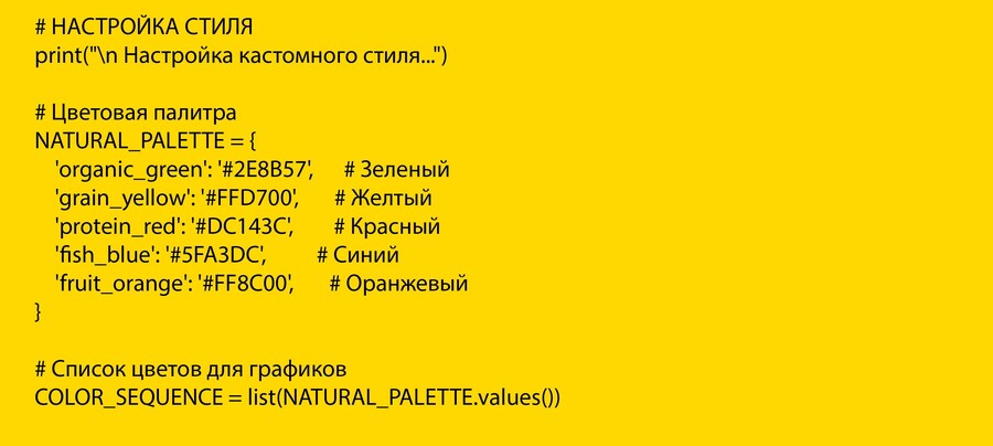 Для визуализации проекта была выбрана цветовая палитра, которая вызывает ассоциации с разными категориями продуктов.