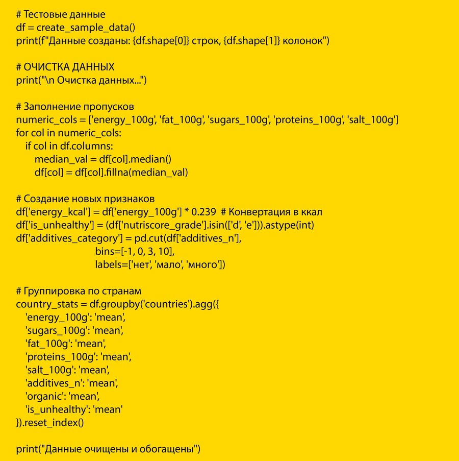 Проведенный анализ данных по продуктам питания из пяти стран (Россия, Франция, Германия, США, Япония) позволил выявить устойчивые закономерности и значимые различия в пищевой ценности, составе и маркировке товаров. Результаты демонстрируют не только объективные различия в рецептурах, но и отражают национальные пищевые политики, стандарты регулирования и потребительские предпочтения.