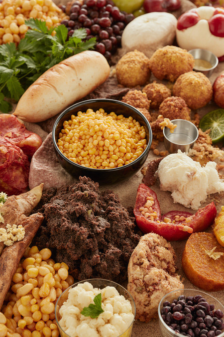 Adobe Color Создание цветовой палитры с использованием фотографий. Chat GPT Вопросы по разработке и оптимизации кода. Krea.ai Генерация обложки. Промт: Image of different products from all over the world. Realistic, close. very colorful. more food. Colours: 2E8B57, FFD700, DC143C, 5FA3DC, FF8C00