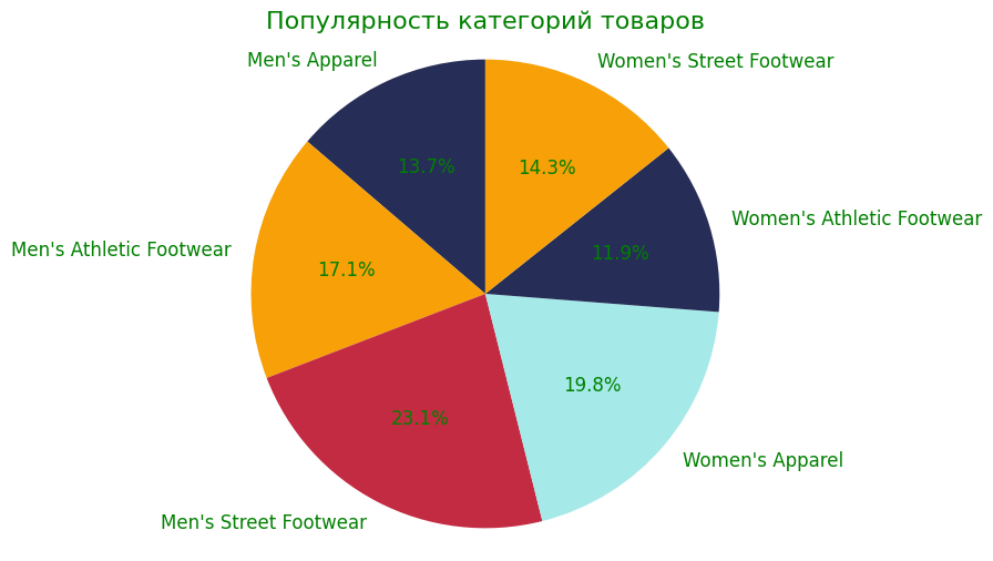 Диаграмма популярности подтверждает, что женская спортивная обувь — безоговорочный фаворит рынка, захватив почти четверть всего внимания (23,1%). Интересно, что покупатели явно больше увлечены обувью, особенно спортивной, в то время как одежда, особенно мужская, явно проигрывает в гонке за интерес.