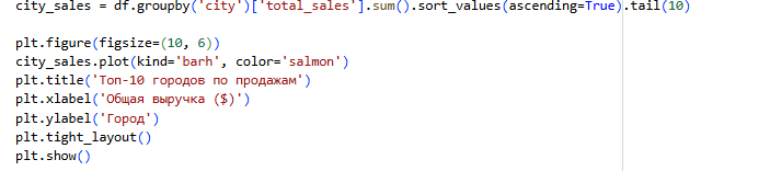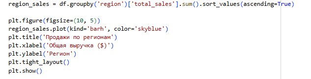 Для визуализации данных были использованы следующие типы графиков: горизонтальная столбчатая диаграмма — Продажи по регионам круговая диаграмма — популярность категорий товаров и продажи по категориям (количество единиц) линейный график — продажи по каналам столбчатая диаграмма — Сезонность продаж по месяцам (по платформам)
