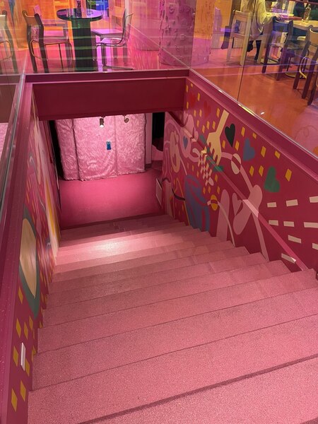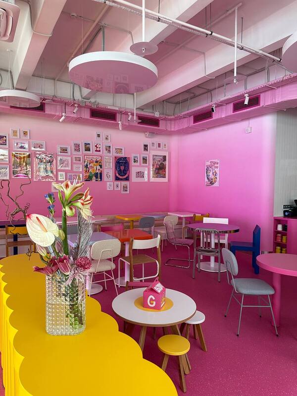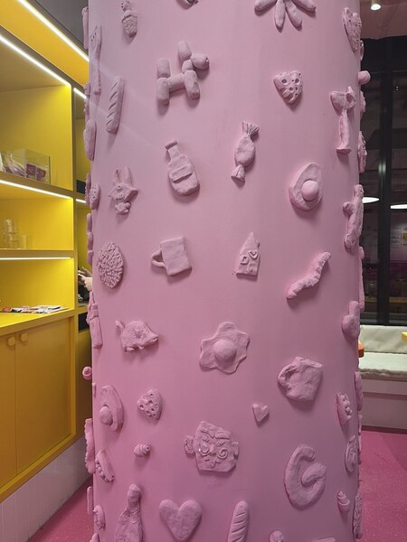 Через красочный и необычный интерьер кафе призывает гостей проживать момент «здесь и сейчас», а также превращать повседневность в праздник. Примерами могут служить блестящая колонна или стеклянные леденцы под потолком. Такой подход способен привлечь как молодую аудиторию, так и людей 30–50 лет, выросших в парадигме ограничений, где всё красивое и хрупкое было доступно лишь по особым поводам.