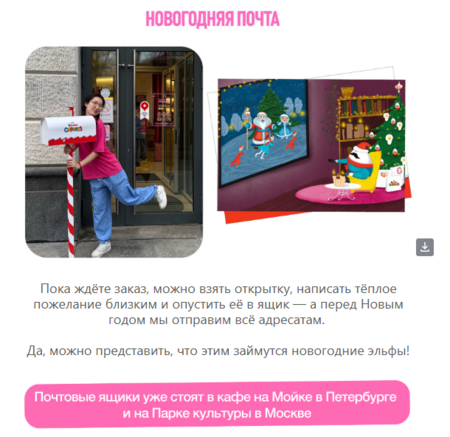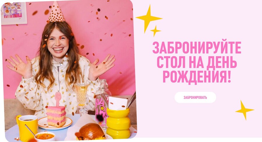 Кроме того, посетители охотно делятся эстетичными фотографиями в социальных сетях, что способствует работе сарафанного радио. В отдельных случаях розовый цвет (глазурь на куличе, крем, розовые коктейли) используется для усиления ассоциации еды с брендом.