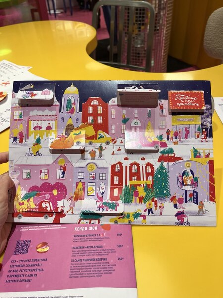 Настольная игра с маскотом бренда, рассказывающая о составе блюд из меню