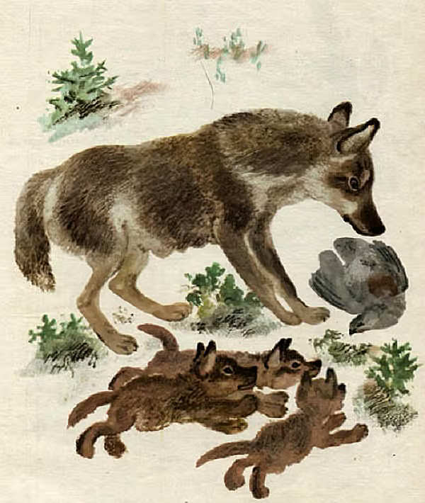 1. «Волчица с волчатами» Сорока, Детгиз 1965 г. 2. «Лисица с лисятами» Большие и маленькие, Детская Литература 1973 г.