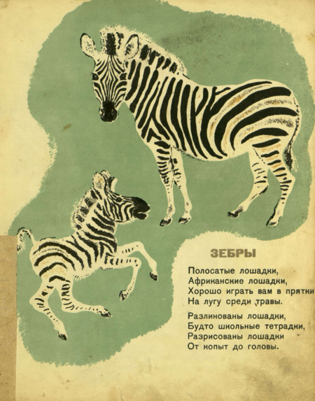1. «Жираф», Детки в клетке, Детгиз 1935 г. 2. «Зебры», Детки в клетке, Детгиз 1935 г.