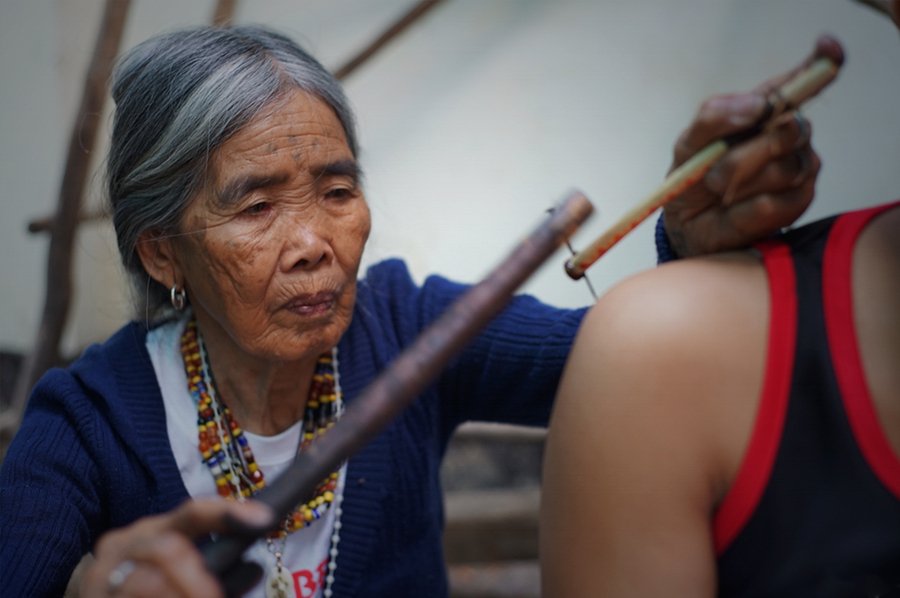 Апо Ванг-Од в процессе создания татуировки. https://steemit.com/created/whang-od?utm_medium=organic&utm_source=yandexsmartcamera