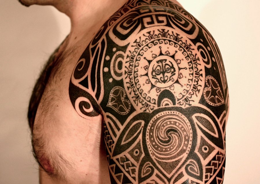 Полинезийская татуировка племени маори. https://welcome-tahiti.com/wp-content/uploads/Tatouage-Polynesien-epaule-homme.jpg