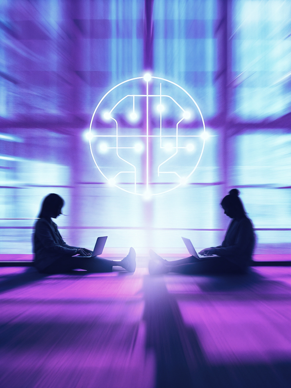 Промт для создания обложки в Recraft.AI: Futuristic and enigmatic cover image for a project about freelance trends. Predominantly purple color palette, with accents of neon blue and magenta. A network of interconnected digital nodes, glowing with light, forming a stylized brain or global network. Abstract figures of freelancers working on laptops, partially obscured by the glowing network.