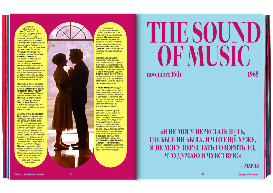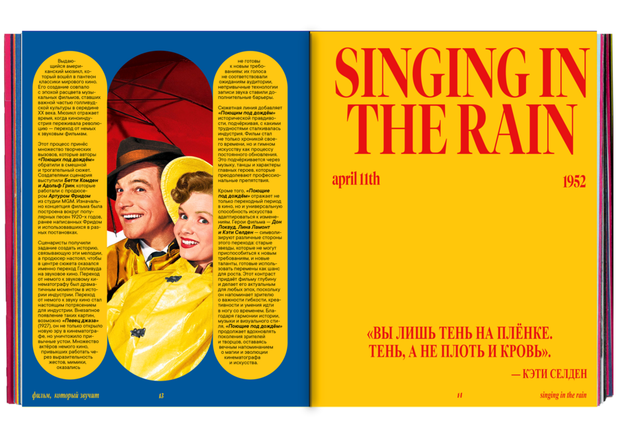 Книга рассказывает о восьми знаменитых киномюзиклах и их влиянии на массовую культуру. Она показывает, как музыка и танцы в этих фильмах помогают передать чувства и мечты. Каждый мюзикл рассматривается отдельно, чтобы выделить его особенности и важность в искусстве.