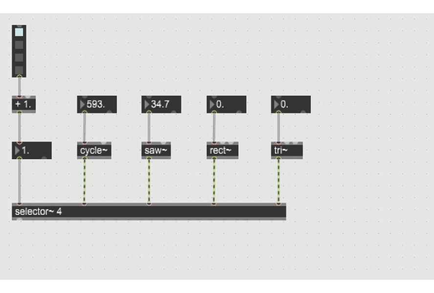 В ходе занятия студенты ознакомились с программой Max/MSP, увидели интерфейс и объекты с основными типами волн. Данный патч показывает, к чему можно прийти, поигравшись с предложенными объектами.