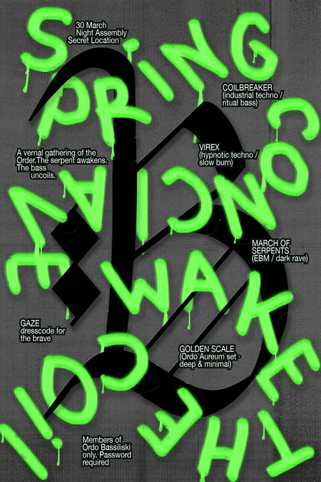 Создание плакатов для тайного средневекового ордена, который проводит рейвы в катакомбах, замках и других секретных местах. Bassilisk — это не просто клуб, это братство со своими манифестом, лозунгами и символикой.