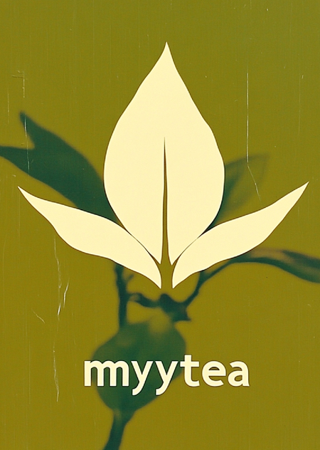 PROMT: A photo of a minimalistic natural tea brand sign. The sign is made in green and white tones. The text «mmyytea» is written in white and placed on a green background. The sign is placed on the background of a white wall. The background is clean and simple, without any other objects or distractions.