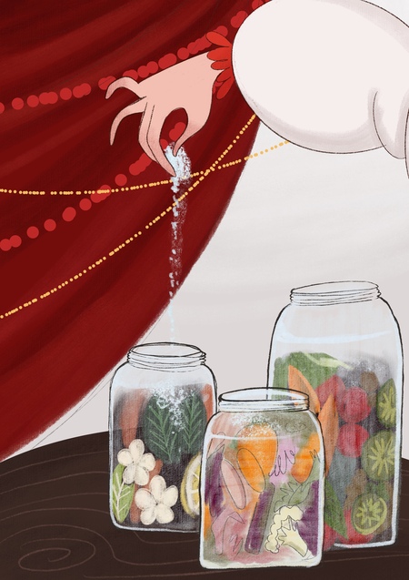 Серия выставочных иллюстраций, вдохновленных классическим русским стилем и посвященных роли соли в русской культуре. Ее использовании в кулинарии как ингредиента и значимости на столе как символ достатка.