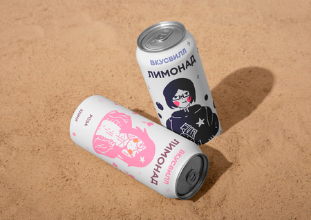 Упаковка лимонадов ВкусВилл для вкусов «Роза», «Лаванда» и «Черная смородина — Пало-санто» выполнена в минималистичном лайн-арт стиле, который подчеркивает чистоту и эмоции. «Роза» оживает в розовых тонах, «Лаванда» успокаивает фиолетовым, а «Черная смородина — Пало-санто» интригует синим. Персонажи, нарисованные тонкими линиями, выделяются на белом фоне с легкими деталями — звездами и штрихами. Стиль привлекает молодую аудиторию, выделяя продукт на полке.