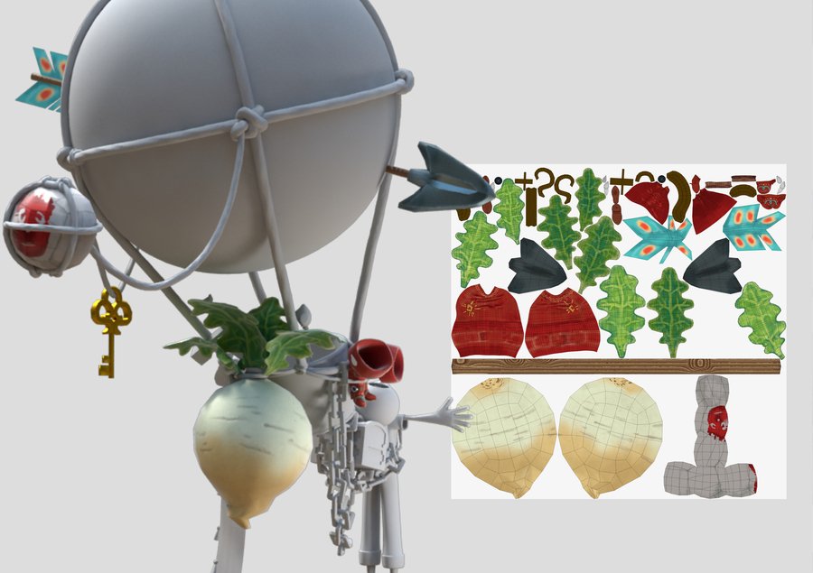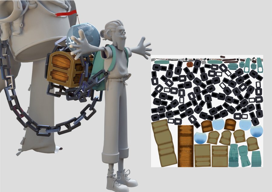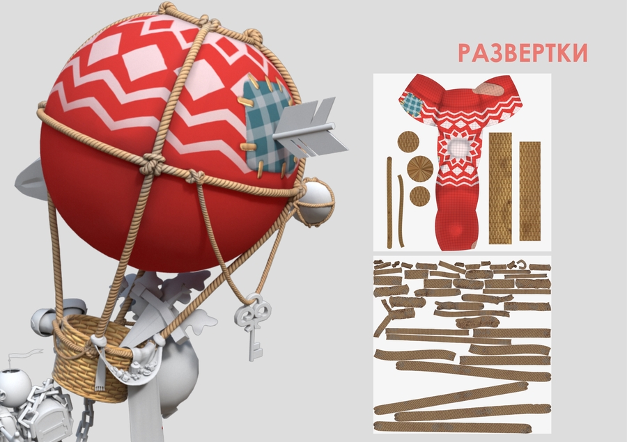 Ретопология высокополигональной модели в лоуполи, подготовка UV разверток и разработка текстур. Использованные программы — substance painter, maya.