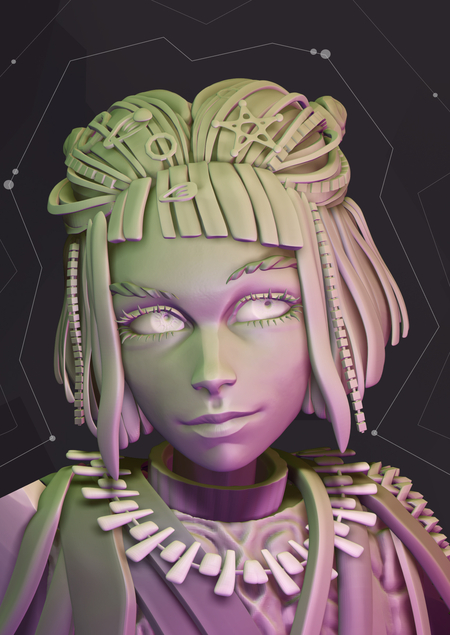 Я решила немного трансформировать лицо, поскольку на концепте оно чересчур детское! Однако Пикер — это взрослая девушка с детской душой, поэтому я посчитала необходимым решение слепить лицо взрослого человека.