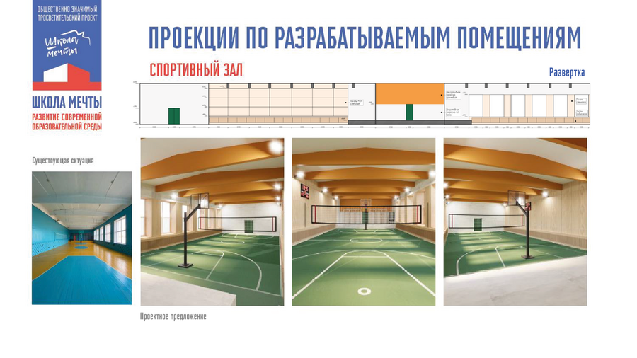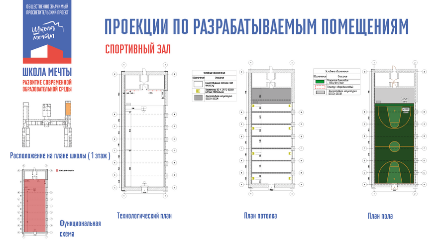 Данное помещение делится на несколько функциональных зон: спортивно-досуговая зона, зона отдыха и зона хранения.