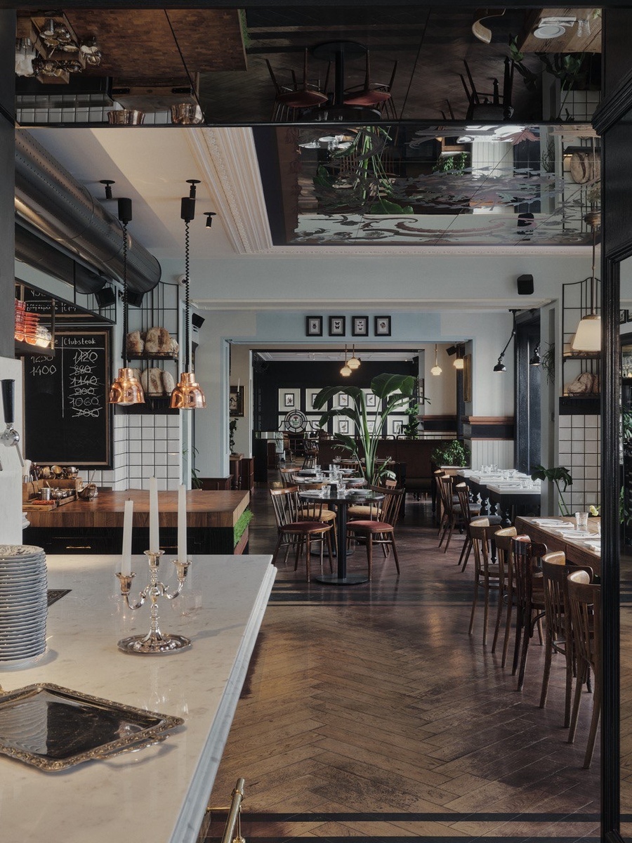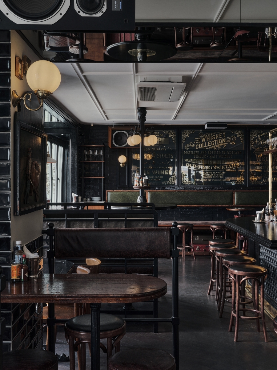 В зоне паба находится барная стойка длиной 10 м с гостевой посадкой пивной и коктейльной зоной