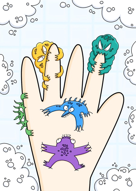 Постер о микробах, обитающих в общественном туалете. В данном проекте показаны различные типы болезнетворных микроорганизмов и места их концентрации. На схеме элементы выставлены по выживаемости на поверхностях и опасности при инфицировании.