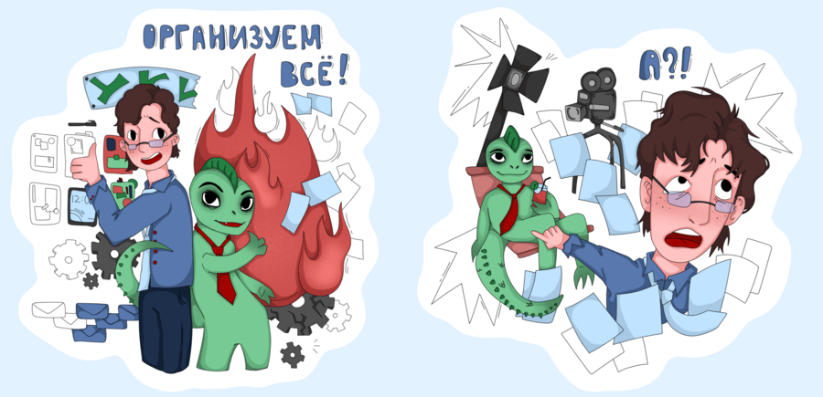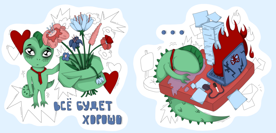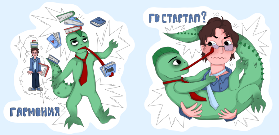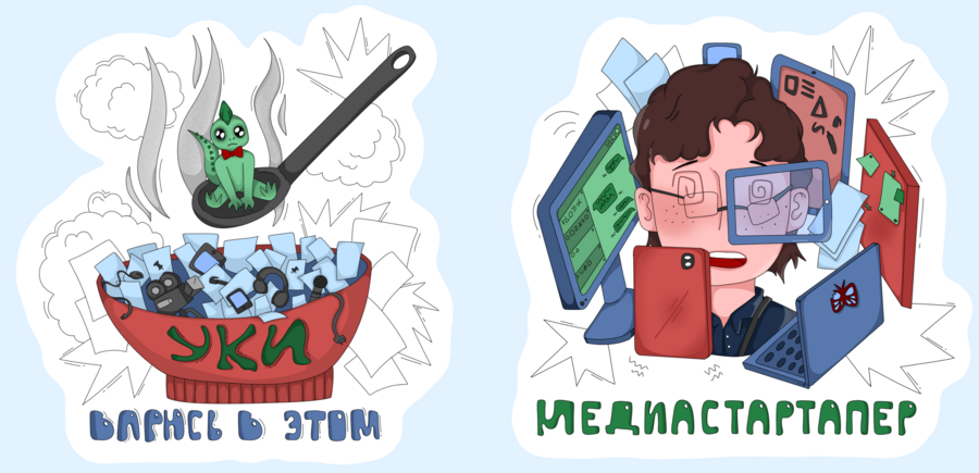 Иллюстрированный стикерпак для программы Управление Креативными Индустриями.
