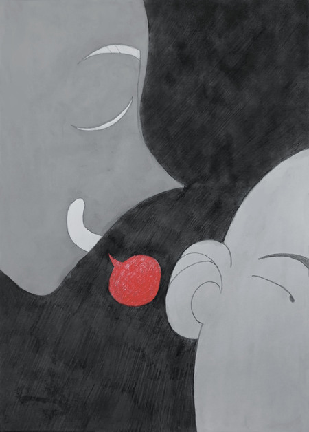 Первый комикс (читается снизу вверх) посвящен недостатку коммуникации, молчанию. Во время чаепития бабушка сидит неподвижно, что смущает непоседливую девочку, которой скучно и неловко сидеть со своей бабушкой.