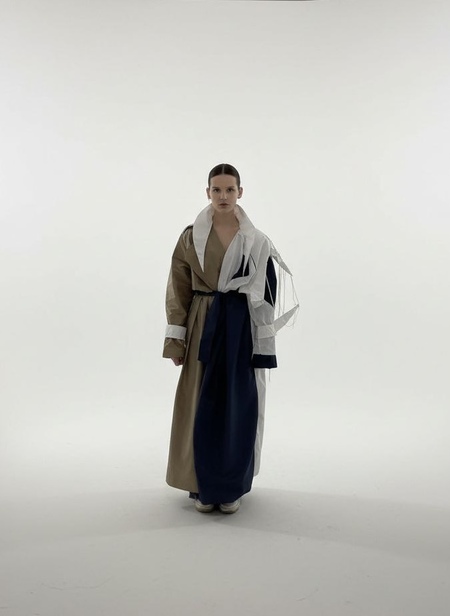 Данный проект представляет собой дизайн тренча, созданного из новости: «Microsoft отключила возненавидевшего человечество бота-нациста». Форма изделия и конструкция отражают идею контроля и уязвимости одновременно: с одной стороны — строгий силуэт, символизирующий порядок и структуру, с другой — элементы деформации, асимметрии и разрывов, указывающие на сбои, агрессию и непредсказуемость ИИ-систем.