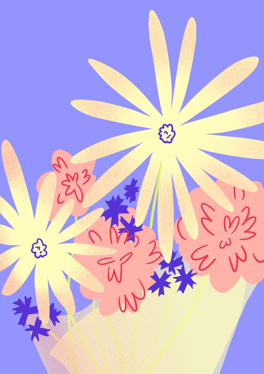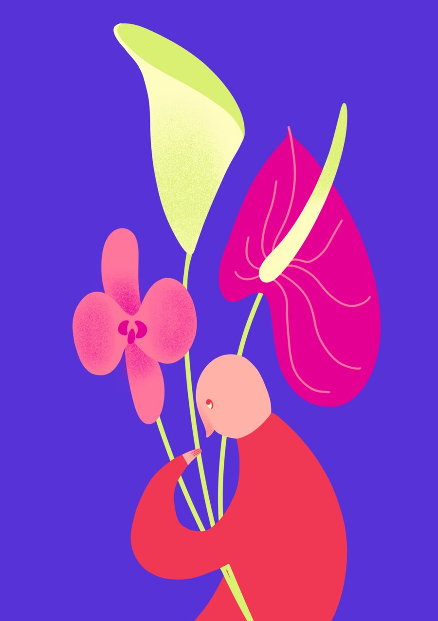 Серия иллюстраций для цветочного магазина. Жизнерадостные открытки показывают, что праздник может быть каждый день, как и повод подарить цветы найдется всегда.
