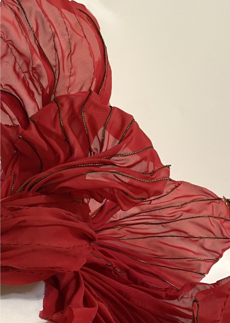 Работы Бакста отличаются особой гибкостью и грациозностью. Его эскизы передают эмоциональную динамику. Эту насыщенность и плавность я хочу показать через ткань в движении, подобно костюмам Бакста.
