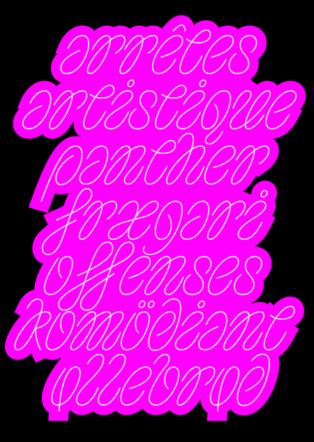 Шрифт Tangley — свободная интерпретация графики Сая Твомбли из серии «Unitled». Шрифт имеет характерную петлеобразность букв, минимальные межбуквенные интервалы и возможность набора с нулевым или даже отрицательным интерлиньяжем. Высота строчных букв сделана максимально высокой, чтобы уменьшить разницу в высоте заглавных и увеличить графическую однородность строчке относительно друг друга.