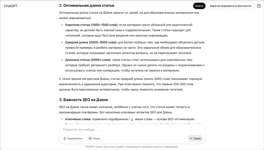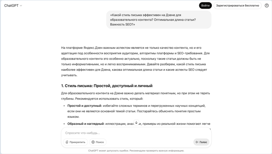 Первый промпт в ChatGPT для создания статьи в Дзене