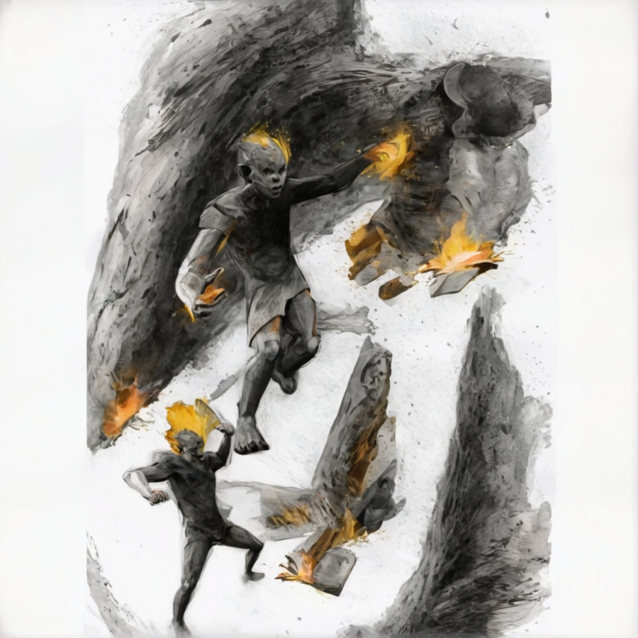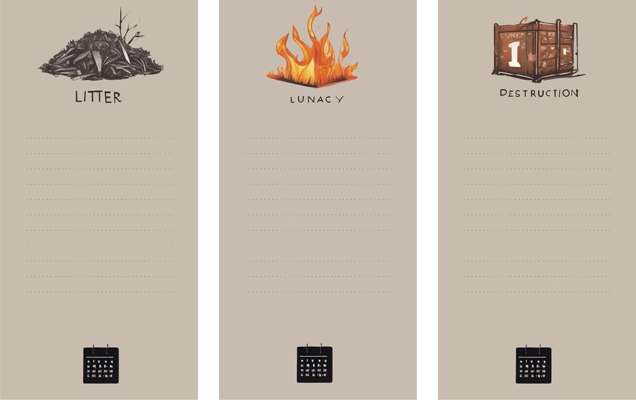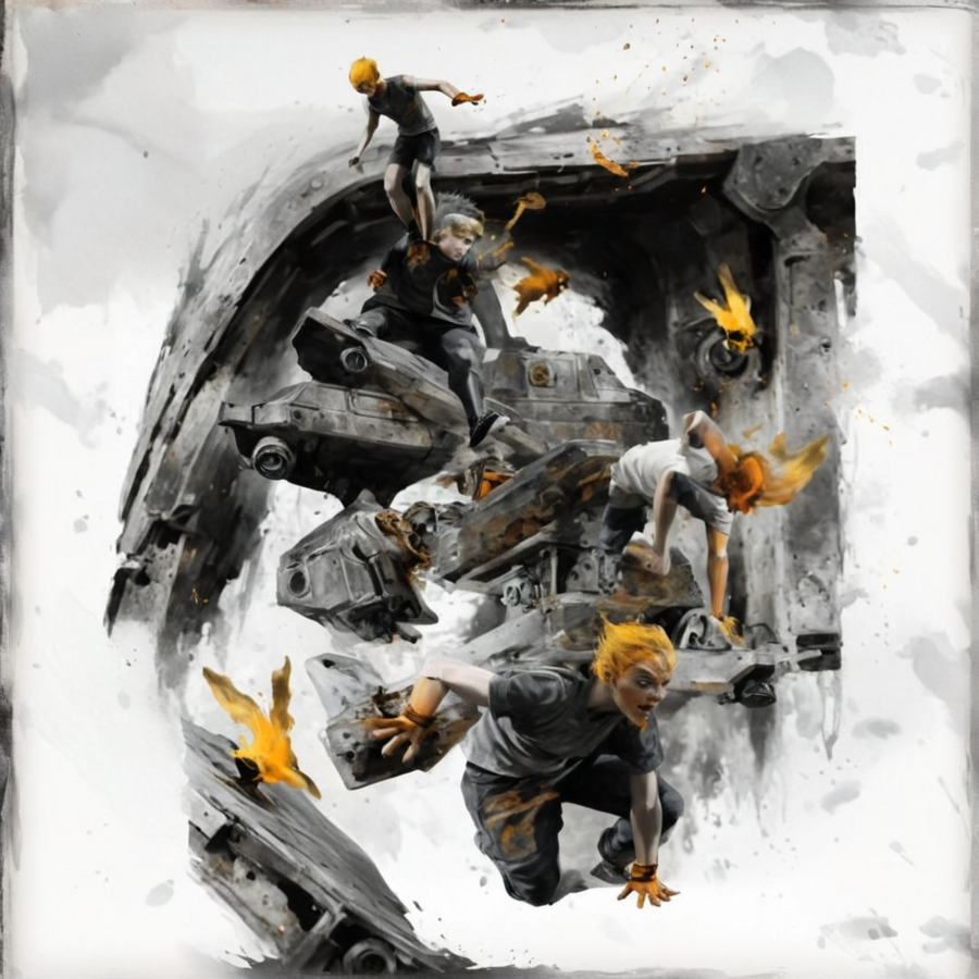 На иллюстрациях хаос, огонь, разрушение, абстрактные фигуры людей. Всё это отражает внутреннее состояние школьников и студентов, для которых осень означает начало нового учебного года и новых беспокойств.
