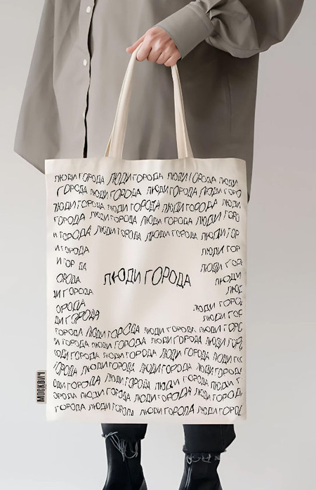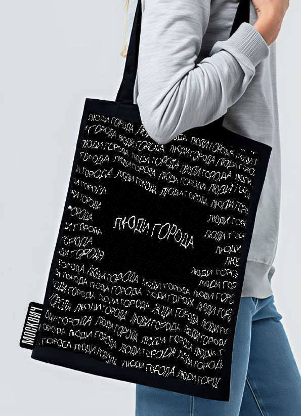 Концепция фирменной продукции для газеты «Москвич». Повторяющиеся надписи «Люди города» создают визуальный эффект движения, отражая постоянное перемещение людей в городе. Их хаотичное расположение передает ощущение беспорядка и энергии. Простой рукописный стиль надписи «Люди города» намекает на уникальность каждого человека, даже в огромном мегаполисе. Многократное повторение «Люди города» ассоциируется с множеством голосов, историй, мнений, формирующих облик Москвы.