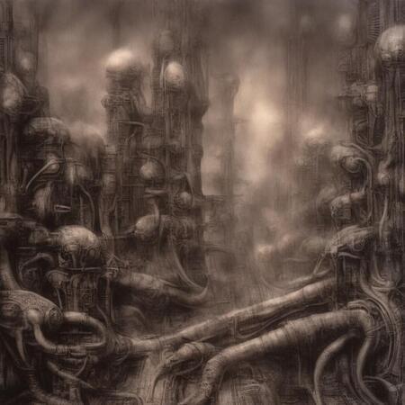 Идея моего проекта заключается в обучении генеративной нейросети Stable Diffusion в стиле художника и дизайнера Ханса Гигера, известного своими сюрреалистичными и биомеханическими работами, с последующим использованием модели для создания уникальных изображений в его узнаваемой эстетике