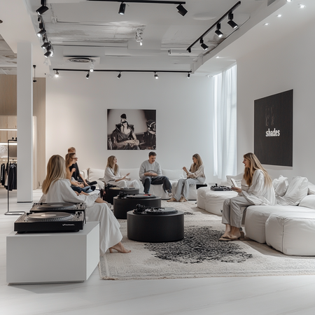 Проект «shades» про вещи людей, каждый может прийти в пространство и поделиться историей вещи. Главной целью проекта является создание двух разных пространств, в одном из них можно насладиться и провести приятное время за чашечкой горячего напитка с вкусными десертами и обсудить историю своей вещи, а в соседнем пространстве расположены виниловые проигрыватели, где посетители делиться музыкальными предпочтениями.