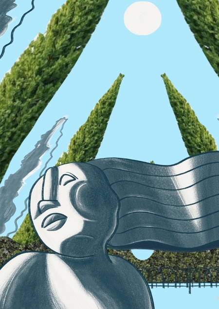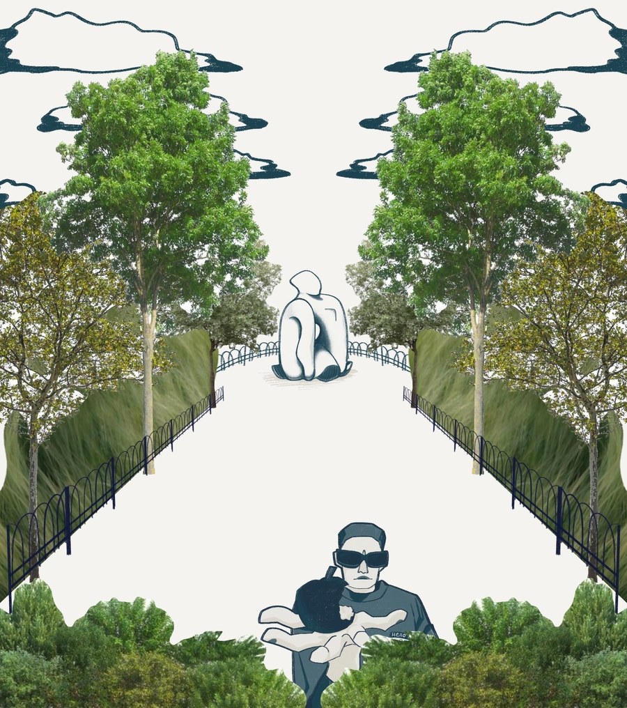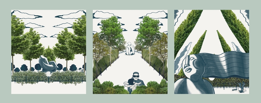 «Хочешь яблоко?» — это серия из трех графических работ, посвященных взаимодействия между статичными и величественными статуями и обычными, моментами, неуклюжими людьми в самом простом городском парке.