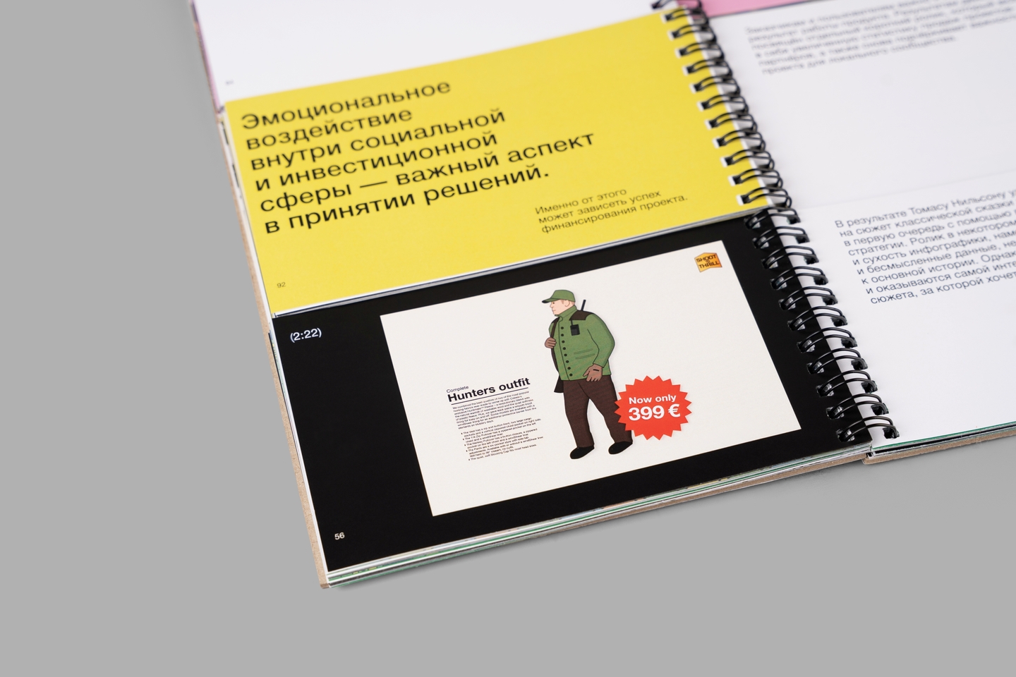 160 × 280 мм Крепление на пружину Твердая обложка: Mondi 160 г/м², переплетный картон, покрытие Soft Touch Блок: Colorlab, 120 г/м² 316 полос