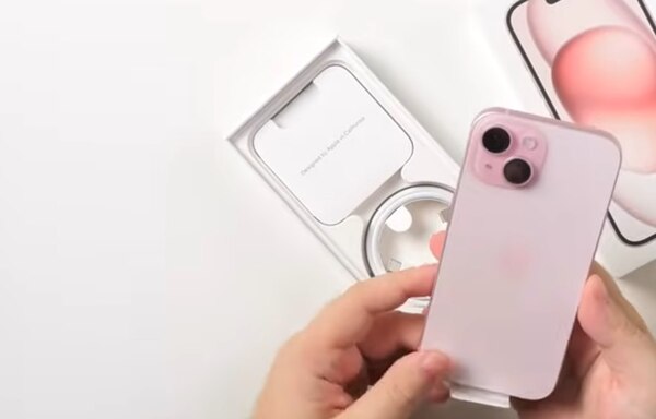 в iPhone 15 (справа) наушников в комплекте не имеется