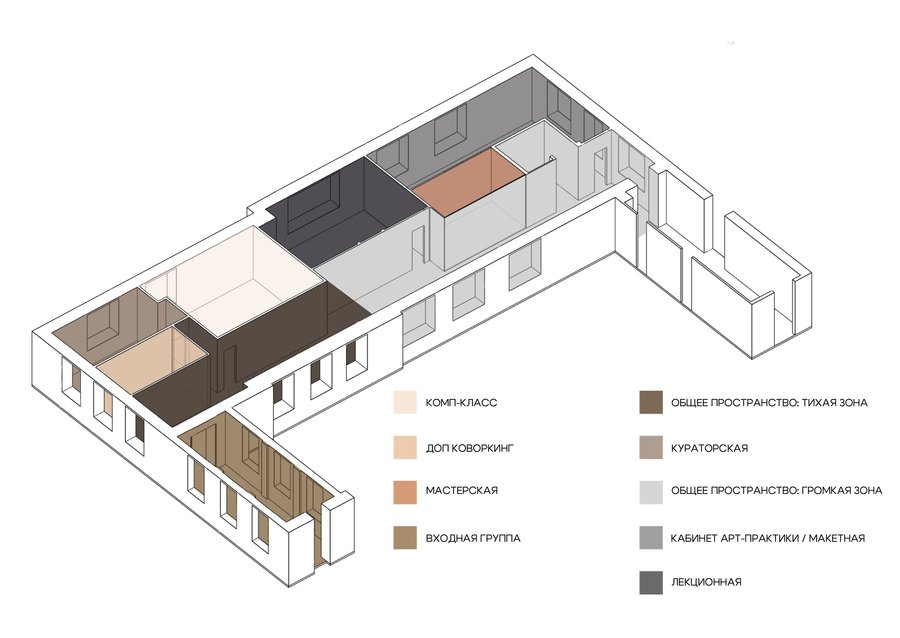 В рамках 1 учебного модуля нашей задачей было спроектировать новый учебный кластер дизайна среды и интерьера на Малой Пионерской.