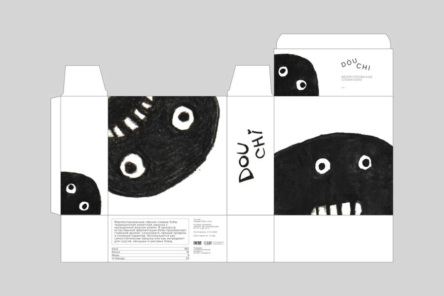 Чёрные ферментированные соевые бобы (dou chi) — традиционный продукт китайской кухни с насыщенным вкусом. В процессе естественной ферментации бобы приобретают глубокий аромат, солёно-пряные ноты и используются как вкусовой акцент в соусах, овощных и горячих блюдах.
