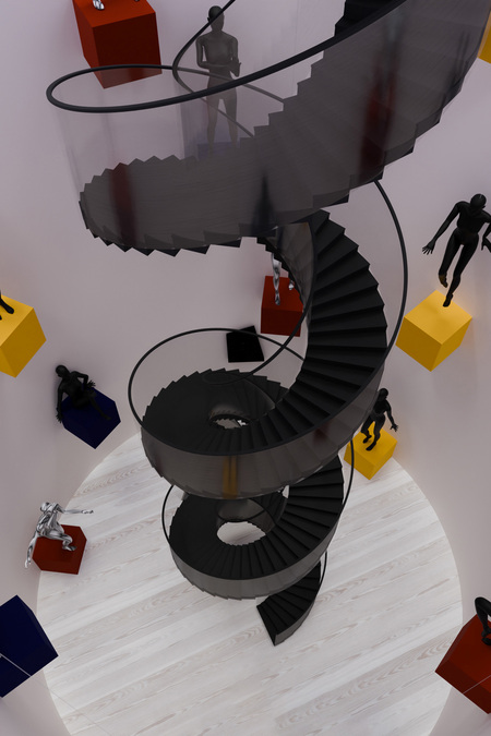 Ателье представляет собой два цилиндрических здания, которые метафорически воплощают форму рулонов ткани. В одном из них располагается примерочная и цеха, в другом — зона ожидания и выставочный зал. В интерьере применяется радиальный принцип: в центре каждого помещения находится ключевой элемент, вокруг которого выстраивается пространство. Один из основных принципов «Раскардаш» — это динамика, поэтому в каждой комнате часть объектов подвешена на лесках, создавая эффект парения.