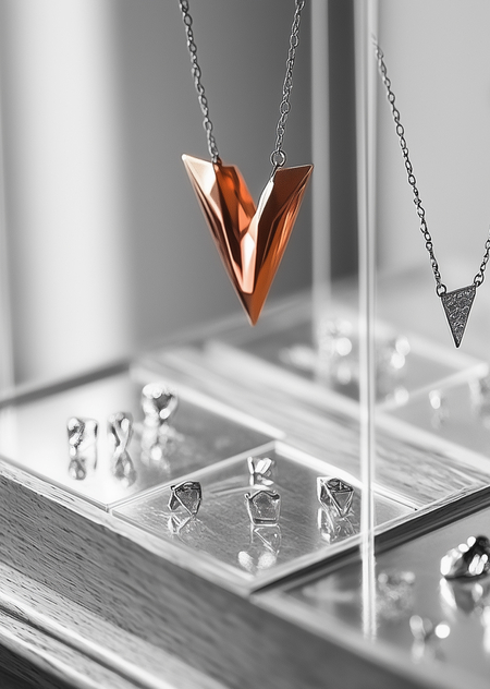 /imagine prompt: shelf of the Volc volcanic jewelry brand store. Darker aesthetics. Black and orange --chaos 45 --ar 6:5 --style raw --stylize 350 --weird 1300 --v 6.1