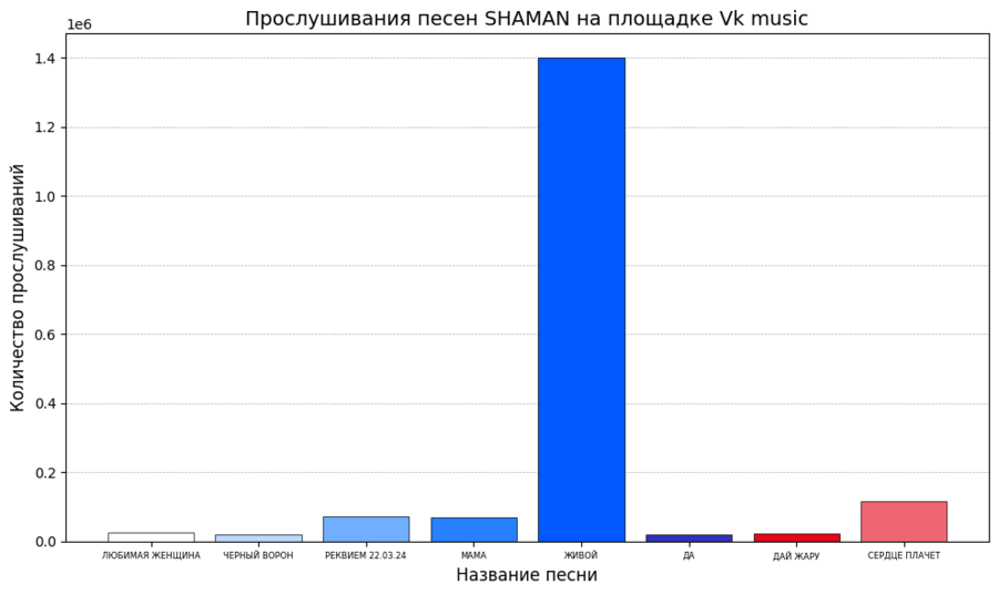 SHAMAN — российский певец, который в последнее время набрал достаточно большую популярность. В своей работе я решила проанализировать данные об исполнителе с трех наиболее активно используемых стриминговых платформ в России с целью составить общую характеристику по популярности исполнителя и его треков по стране.