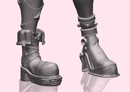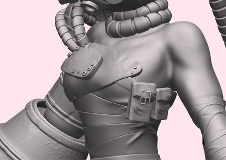 В процессе дизайн персонажа подвергся некоторым изменениям: усложнились детали механической ноги, ботинка и частей брони