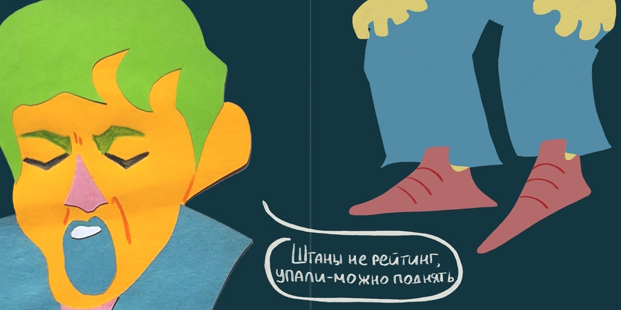 «Это полный Хахатбл» — это маленький комедийный зин, посвященный шуткам и знакомым лицам из КВН. Работа выполнена аппликацией с дополнительным экспериментом с формами и текстурами, для передачи веселых и немного абсурдных историй, которые напомнят о самых ярких моментах любимой игры.