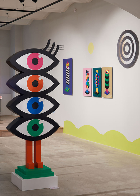 Выставка в ГУМ RED LINE демонстрирует новую группу произведений — расширенную вселенную персонажей, впервые появившихся на Фестивале паблик-арта «ЧО» в Екатеринбурге в 2020 году как проект «Художественно-пространственное ориентирование». Бывшие когда-то барельефами на фасадах в столице Урала, в Москве красочные персонажи появляются в виде восьми самостоятельных металлических объектов выше человеческого роста и сопровождаются различными менее крупными производными: пластификациями, тиражной графикой, видео, скульптурой из МДФ, живописью.